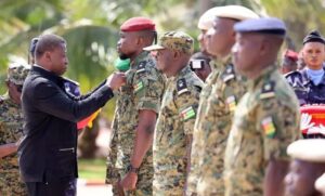 Moment fort de la journée, le Président du Conseil a procédé à la décoration à titre posthume des militaires tombés en 2025, en les élevant à la dignité de Chevaliers de l’Ordre du Mono. Après la lecture des citations retraçant leurs faits d’armes, il a également décoré les soldats blessés et d’autres militaires ayant fait preuve d’un courage exceptionnel. Dans un geste chargé d’émotion, le Général Dimini Allaharé a remis aux familles le drapeau national et les médailles correspondantes, en reconnaissance du sacrifice ultime consenti pour la patrie.